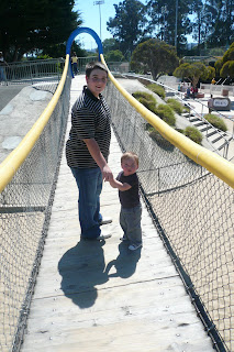 You wouldn't know it by looking here, but this was the absolute coolest slide I've ever ridden. And it was just a really tall, brightly painted, cushy-ground-surrounded version of something you might find in a potato packing warehouse, rolling things (in this case people) along. Even though it was 3000 degrees out in Monterey at the time, Django & I climbed to the top of this thing and waited in long lines -- again, and again, and again, and again -- for the sheer, bumpity-bump, joy of it.